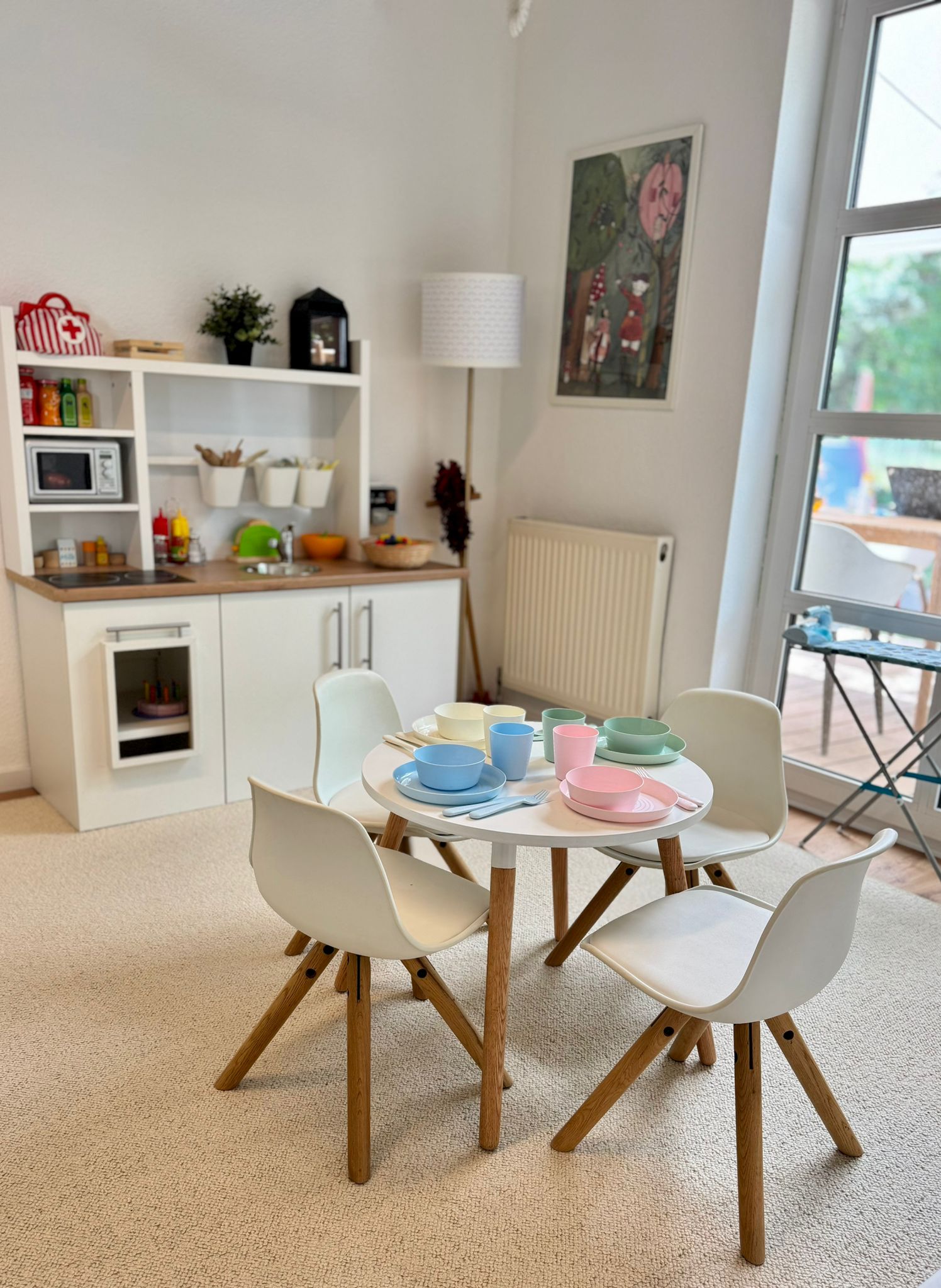 Wir sind ein Team von vier staatlich anerkannten Erzieherinnen, die den Kindern ein geborgenes Umfeld bieten, in dem sie Wertschätzung und Sicherheit erfahren. Wir setzen auf die Lust an neuen Erfahrungen, die Freude an der Bewegung, sowie Erlebnisse in der Natur. Einer unserer Schwerpunkte ist die Erziehung zur Selbstständigkeit. Dabei sind uns die und individuelle Förderung jedes einzelnen Kindes, die Entwicklung des Sozialverhaltens und die Förderung der sprachlichen, sowie emotionalen Kompetenzen sehr wichtig. Da wir eine Elterninitiative sind, legen wir großen Wert auf einen engen und regen Austausch zwischen den Eltern und den Erzieherinnen.